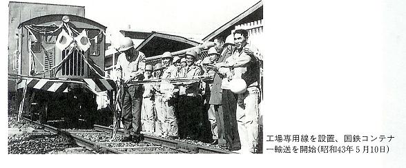 工場専用線を設置、国鉄コンテナー輸送を開始[1] |