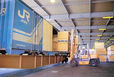 ![]() 『Monthlyかもつ』1992年11月号 通箱のコンテナへの積み込み |