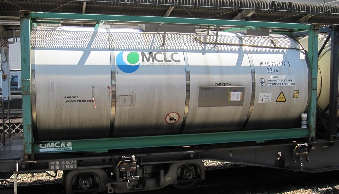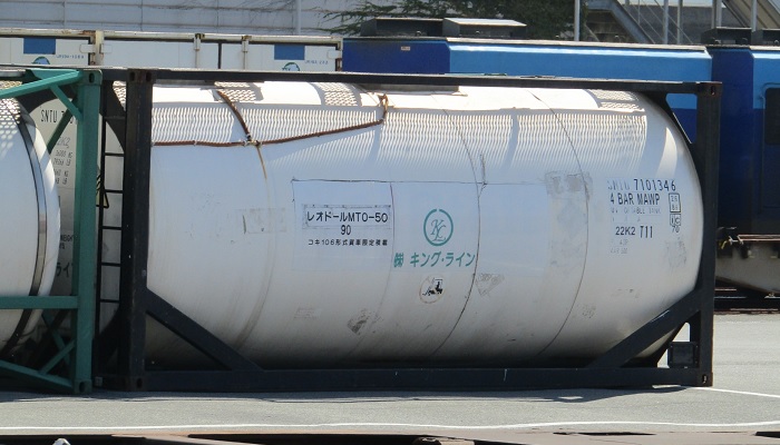 有者】 三菱瓦斯化学株式会社 【輸送品目】 過酸化水素専用 【運用区間】 四日市〜関東・九州と思われる 【その他】 三菱瓦斯化学(株)四日市工場の過酸化水素輸送のISOタンクコンテナ化はEUROTAINER社のSECS形式で スタートしたが、近年は自社所有のISOタンクコンテナも見られるようになった。 2019.7.14作成