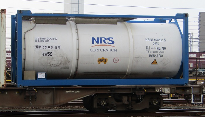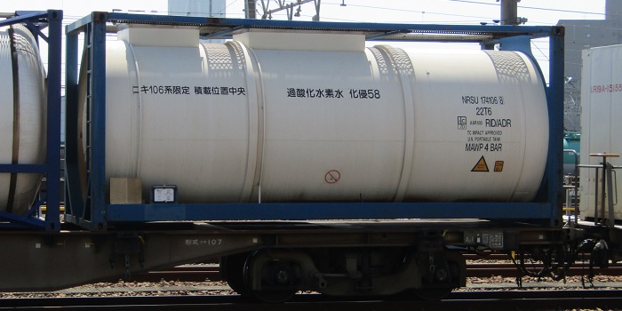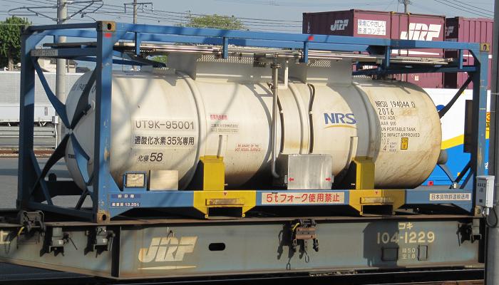 有者】 株式会社日陸 【借受者】 三菱瓦斯化学株式会社 【輸送品目】 過酸化水素専用 【運用区間】 四日市〜鳥栖(タ) 【その他】 かつて三菱瓦斯化学(株)四日市工場から同社大牟田工場向けの過酸化水素はタンク車によって輸送されていた。運用区間は南四 日市 〜大牟田で、大牟田駅からタンクローリーに積み替えて大牟田工場まで運ばれていた。 しかし2003年1月にはISOタンクコンテナ輸送に切り替えられ、着駅が福岡(タ)駅に変更され、2007年には南四日市駅の専用線廃止に伴い、発駅 が四日市駅に変更された。 また2006年3月に鳥栖(タ)駅が開業し同駅にはトップリフターが配備されたことから着駅が福岡(タ)駅から変更されたようだ。 2013.4.20作成