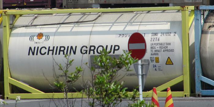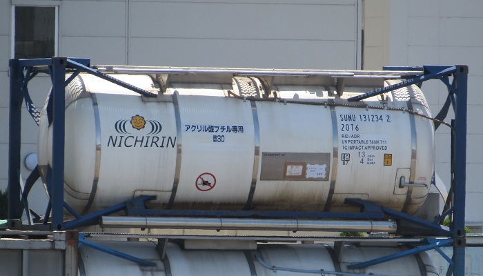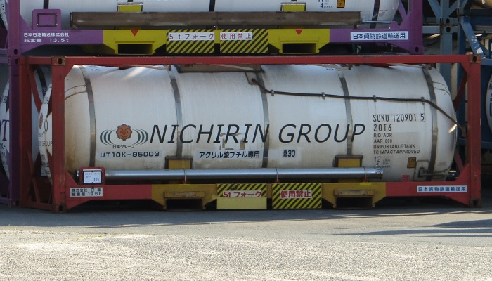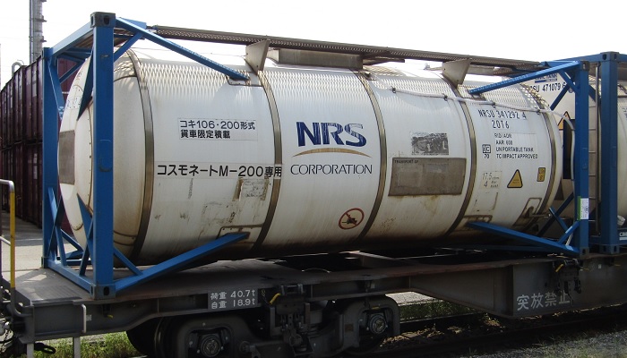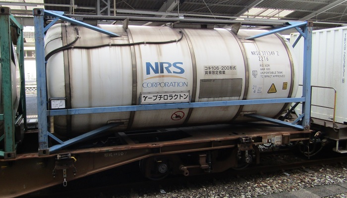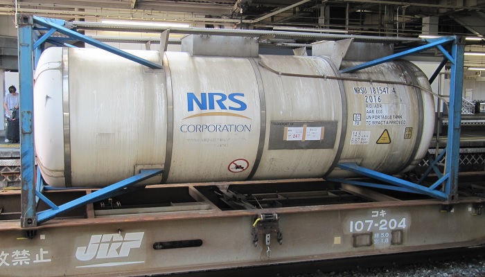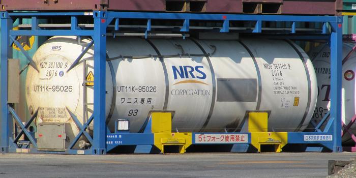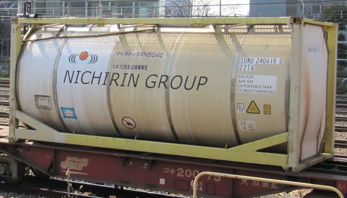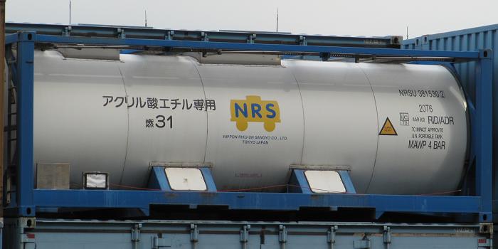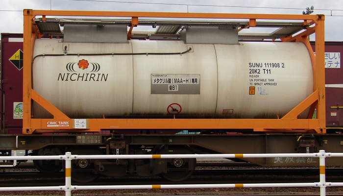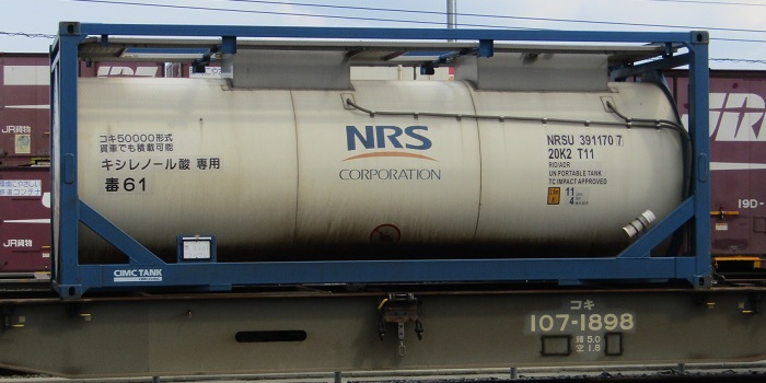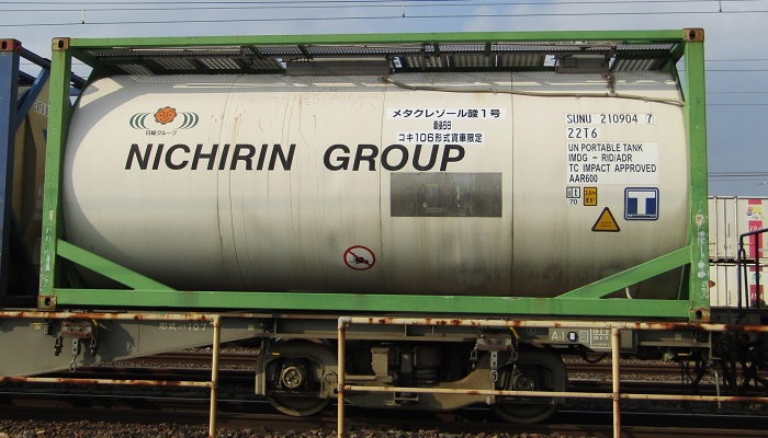 有者】 株式会社日輪 【借受者】 株式会社クラレ 又は 三菱瓦斯化学株式会社 【輸送品目】 メタクリル酸 【運用区間】 不明 【その他】 (株)クラレと三菱瓦斯化学(株)はそれぞれ新潟にある製造拠点でメタクリル酸を生産している。そのためこのコンテナは両社 のどちら かが荷主と思われる。 2015.10.11作成