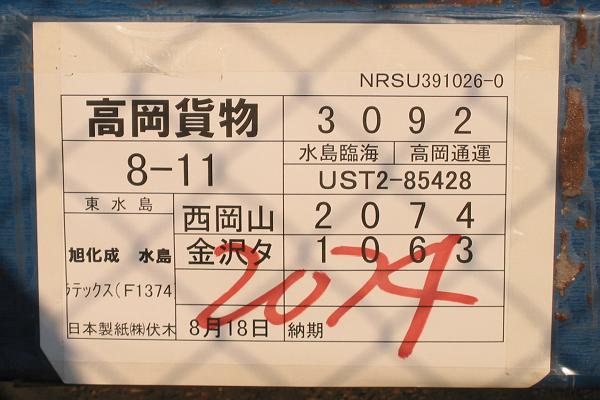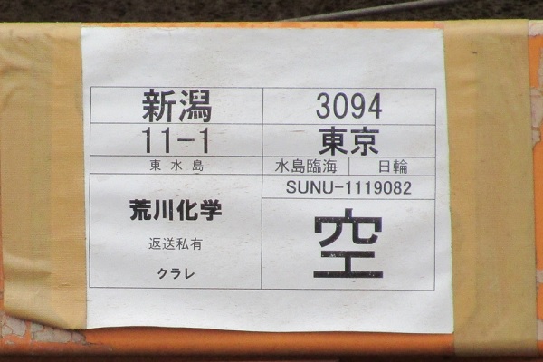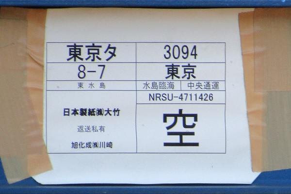 有者】 株式会社日陸 【借受者】 旭化成株式会社 【輸送品目】 ラテックス専用 【運用区間】 東京(タ)〜東水島(荷票の写真はこちら) 【その他】 発荷主は、旭化成(株)川崎製造所、着荷主は日本製紙(株)大竹工場である。 2017.8.20作成