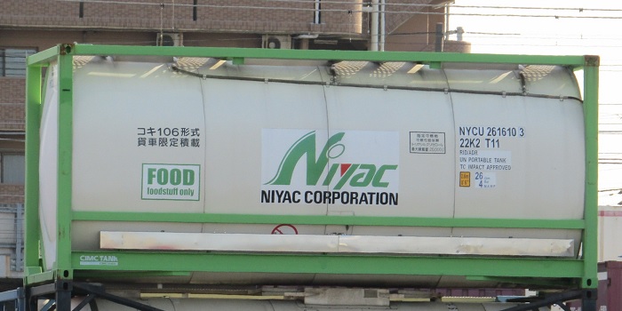 有者】 株式会社ニヤクコーポレーション 【輸送品目】 トリアシルグリセロール 【運用区間】 不明 【その他】 花王(株)の脂肪酸輸送と思われる。尚、脂肪酸が3分子結合したトリグリセリドをトリアシルグリセロールという。 2021.5.30作成