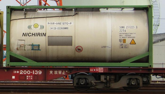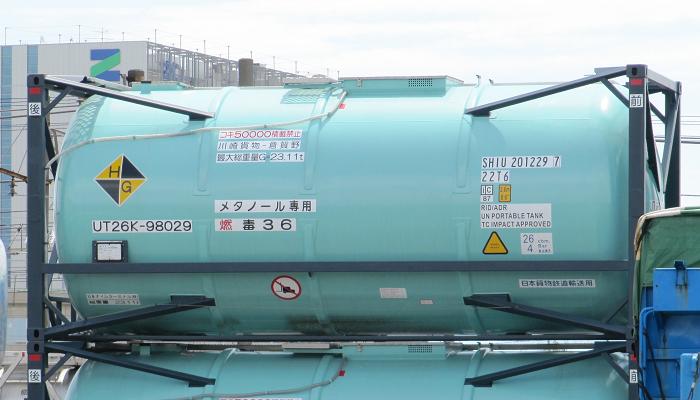 有者】 日本オイルターミナル株式会社 【借受者】 信越化学工業株式会社 【輸送品目】 メタノール専用 【運用区間】 川崎貨物〜倉賀野 【その他】 タンクローリーで川崎臨海部から群馬県までタンクローリーで運ばれていたメタノールを日本オイルターミナル(株)高崎営業所にメタノール用タンク5基 (1,500トン貯蔵)を新設し、2012年8月から大型タンクコンテナによる鉄道輸送へ転換した。年間輸送量は、約6万トンを見込む。 (参考文献『Monthlyかもつ』2012年10月号、『日刊工業新聞』2012年8月23日付) 2012.11.18作成