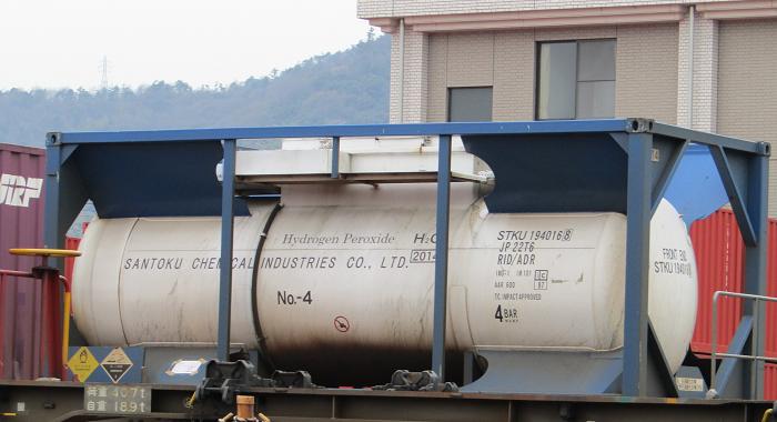 有者】 三徳化学工業株式会社 【輸送品目】 過酸化水素専用 【運用区間】 仙台(タ)〜大竹 【その他】 三徳化学工業(株)(本社:東京都中央区)は宮城工場(仙台市青葉区芋沢)で過酸化水素を製造している。 同社は2004年度に「環境負荷の小さい物流体系の構築を目指す実証実験」により仙台〜広島間のタンクローリーによる過酸化水素の輸送を鉄道コンテナに シフトした。輸送量は約700トン/年である。 2016.4.2作成