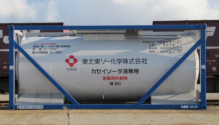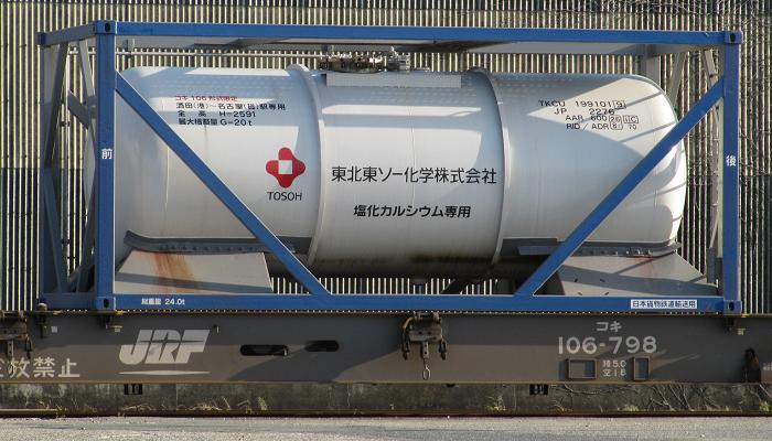 有者】 株式会社日陸 【借受者】 東北東ソー化学株式会社と思われる 【輸送品目】 次亜塩素酸ソーダ 【運用区間】 不明 【その他】 秋田貨物〜東京(タ)の2092レに積載されているのを目撃した。 東北東ソー化学(株)は酒田工場で次亜塩素酸ソーダ(トーソーキューブ®)を製造している。 2017.1.9作成