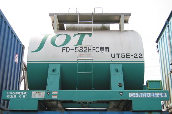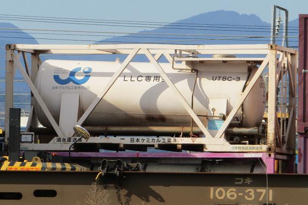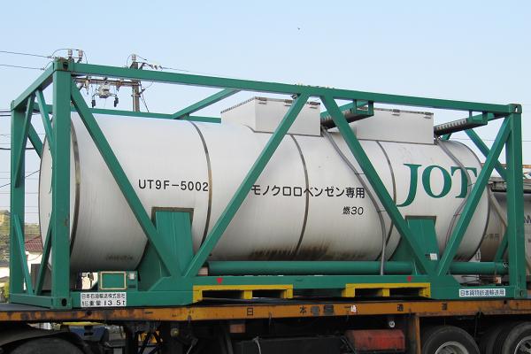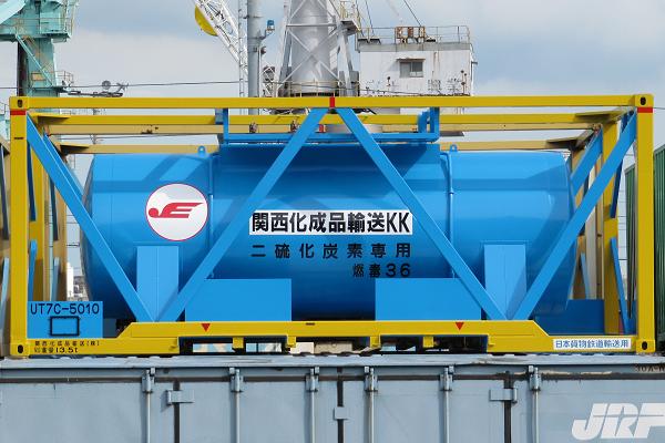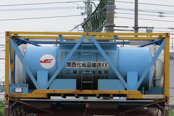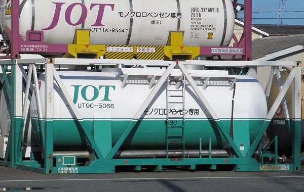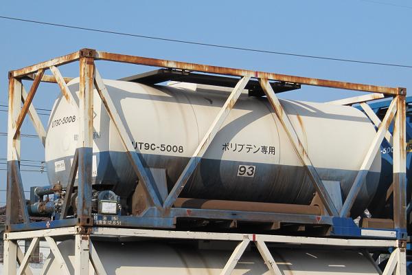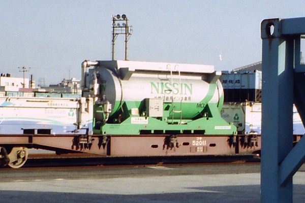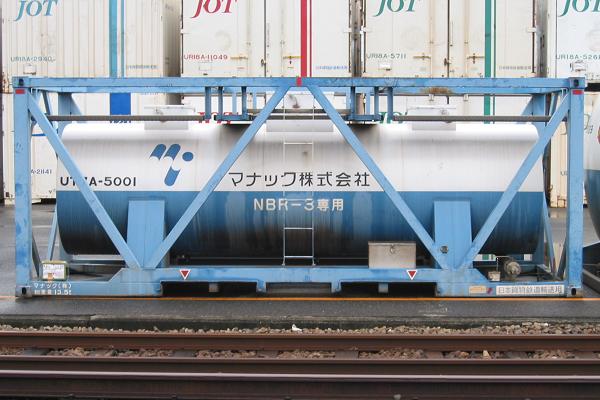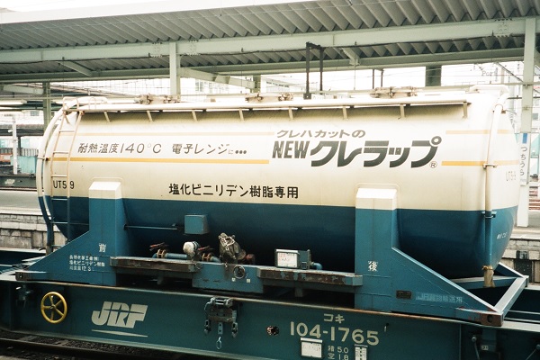 有者】 日本石油輸送株式会社 【借受者】 呉羽化学工業株式会社(現、株式会社クレハ) 【輸送品目】 塩化ビニリデン樹脂専用 【運用区間】 小名浜〜百済 【その他】 (株)クレハは、いわき事業所で包装材の原料となる塩化ビニリデン樹脂の製造を行っており、樹脂加工事業所が兵庫県丹波市柏原町北中150にあり、 「NEW クレラップ」等を生産している。 (同社webサイト参 照) いわき事業所から樹脂加工事業所柏原への原料・塩化ビニリデン樹脂の輸送に20ftタンクコンテナを利用している。(参考文献:『Monthlyかも つ』2011年1月号) 2012.7.21作成 2022.9.11写真差替
