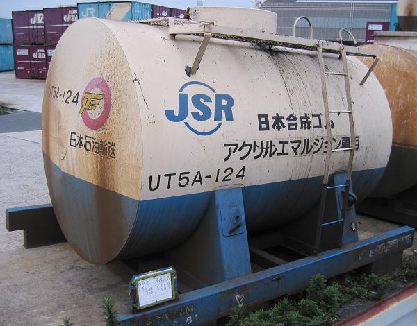 有者】 日本石油輸送株式会社 【借受者】 日本合成ゴム株式会社(現、JSR株式会社) 【輸送品目】 アクリルエマルジョン専用 【運用区間】 四日市〜水沢 【その他】 水沢駅の到着荷主は不明だが、アクリルエマルジョンが粘・接着剤で使われるということから、北上市村崎野14地割453番地5に立地する東北ユーロイド工業(株)ではないかと考えられる。同社は三井化学(株) が 100% 出資しており、ホルマリンや合板用接着剤の東北地方の生産拠点として機能している。 尚、同社はかつて村崎野駅に専用線を保有し、その専用線廃止後も太郎代〜北上のタキによるメタノール輸送の到着荷主として鉄道貨物輸送を利用してきたと いう歴史がある。 2012.7.8作成
