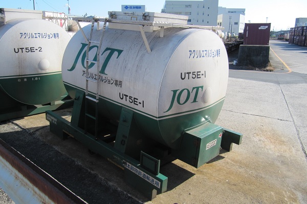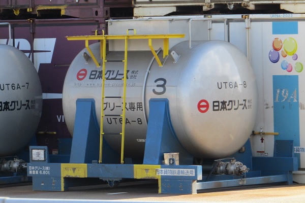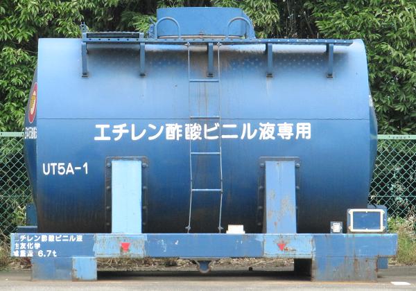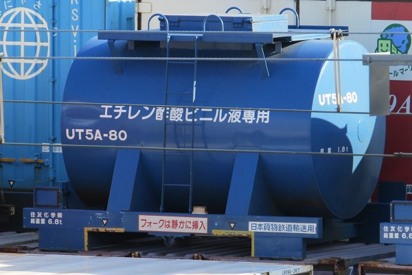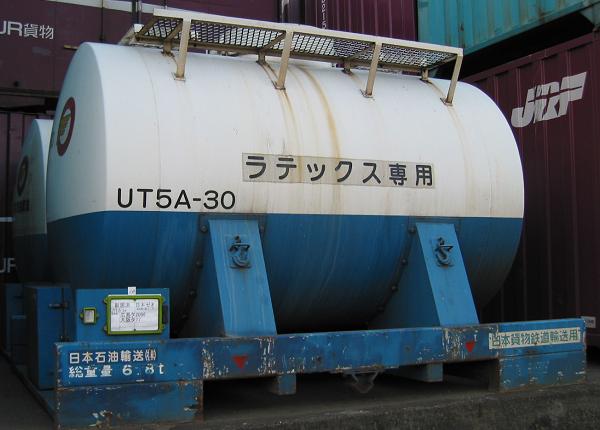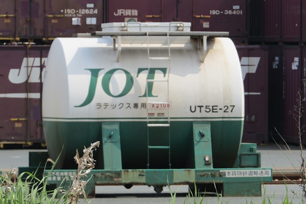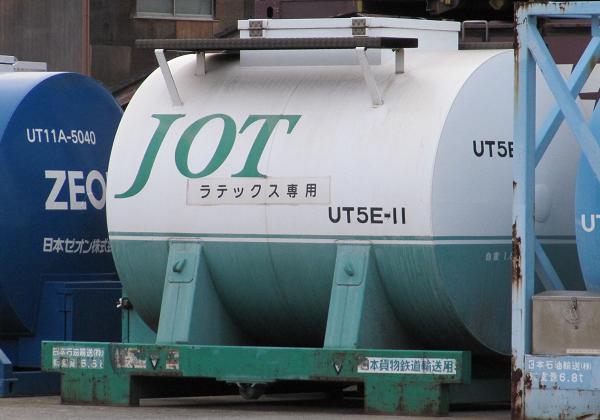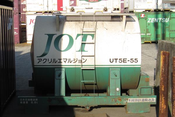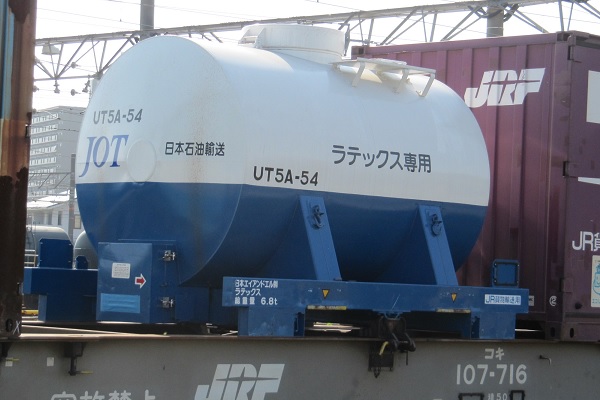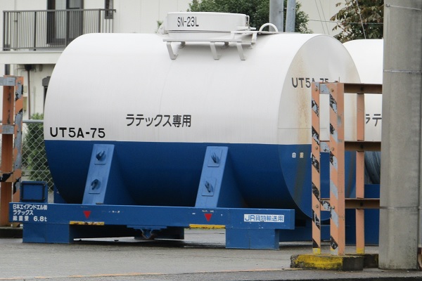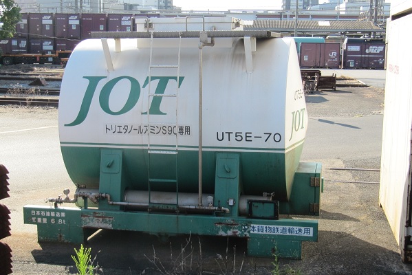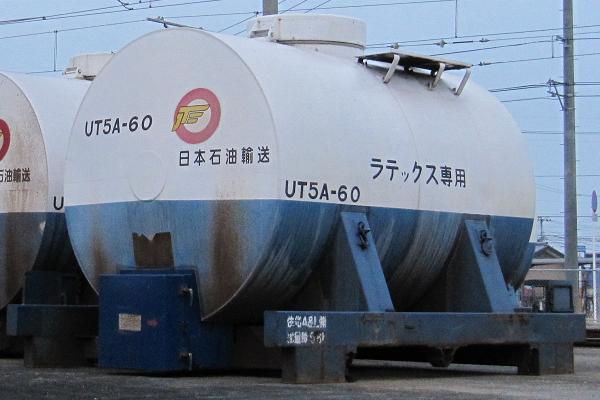 有者】 日本石油輸送株式会社 【借受者】 日本エイアンドエル株式会社 【輸送品目】 ラテックス専用 【運用区間】 新居浜〜全国各地と思われる 【その他】 新居浜駅にはUT5A形式のラテックス専用コンテナが多数留置されているが、日本エイアンドエル(株)、住化A&L(株)、無表記のものが入り 混じっている。 2017.10.28作成