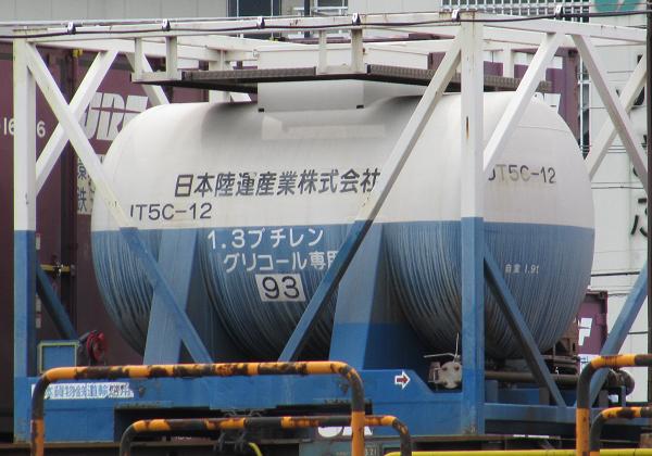有者】 日本陸運産業株式会社 【借受者】 株式会社ダイセルと思われる 【輸送品目】 1.3ブチレングリコール専用 【運用区間】 大竹〜東京(タ) 【その他】 (株)ダイセルは大竹工場の1,3-ブチレングリコールの生産能力を2割増強する。1,3-ブチレングリコールは主に化粧品原料として使用され、アジア を中 心に需要が伸びている。増強は2016年11月に完了する予定。(同社webサイトよ り) 2012.8.11作成 2016.4.2訂補