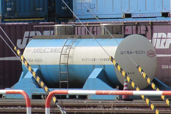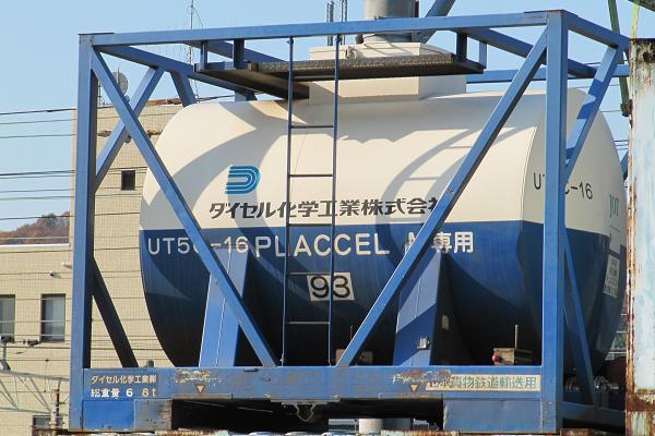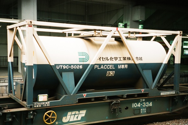 有者】 日本陸運産業株式会社 【借受者】 ダイセル化学工業株式会社 【輸送品目】 PLACCEL M専用 【運用区間】 大竹〜小名浜 【その他】 小名浜駅の着荷主は大日ケミカル(株)であった。同社は (株)ダイ セルのグループ会社で、オリゴマー製品、アクリル樹脂、ポリエステル樹脂などの製造及び販売を 行う。本社は、いわき市常磐下船尾町杭出作23-11である。 2012.7.21作成 2022.9.11写真差替