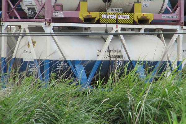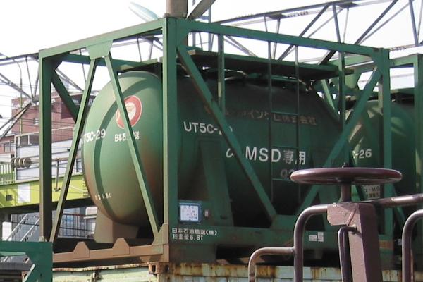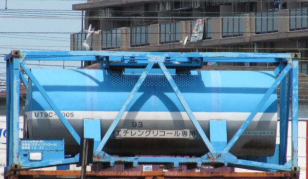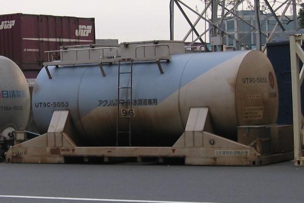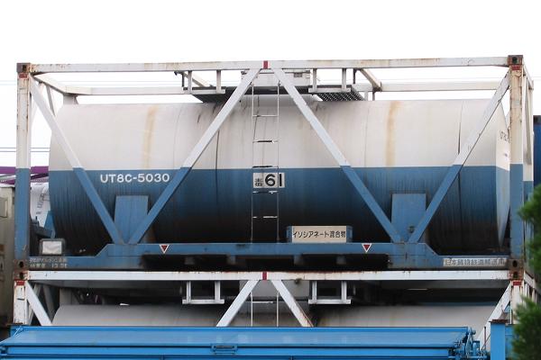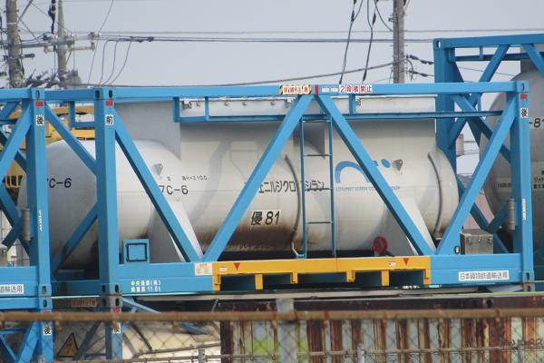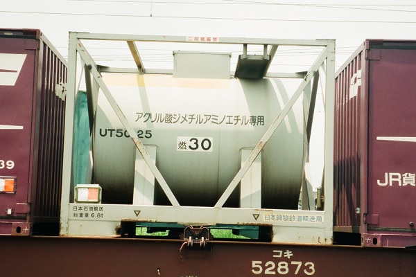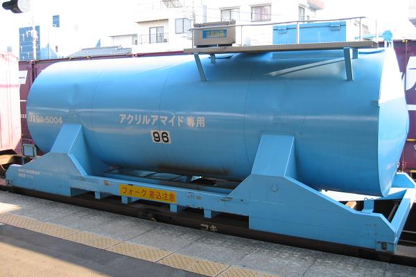 有者】 株式会社ガスケミカル物流西日本 【輸送品目】 アクリルアマイド専用 【運用区間】 大阪(タ)〜静岡貨物 【その他】 (株)ガスケミカル物流西日本は、三井化学(株)系列の(株)MCI物流西日本が前身の物流会社である。2009年に(株) ニヤクコーポレー ション系列となった。当コンテナは未だに(株)MCI物流西日本の表記のままである。 三井化学(株)大阪工場はアクリルアマイドを生産してい る。アクリルアマイドの主な用途は、高分子凝集剤や紙力増強剤である。 静岡貨物駅に到着したコンテナは、富士地区の製紙メーカー向けにアクリルアマイドを供給しているのであろうか。 2016.8.14作成