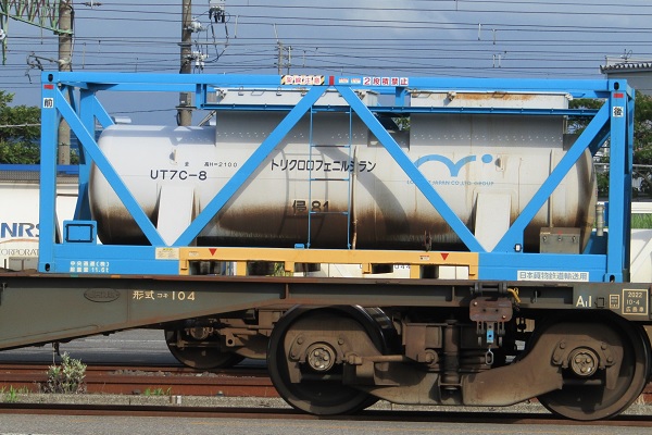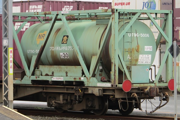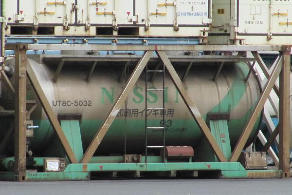 有者】 三菱化学物流株式会社 【借受者】 日本新聞インキ株式会社 【輸送品目】 新聞印刷用インキ専用 【運用区間】 四日市〜黒崎 【その他】 日本新聞インキ(株)は毎日、朝日、読売、中日、日経、西日 本な ど全国の主要な新聞社40数社を株主とする新聞印刷用インキメーカーである。東京工場(川崎市)と中部工場(三重県いなべ市)の2工場を擁する。 常置場所は、「四日市市大井の川町2-1」と表記されている。 2021.8.12作成