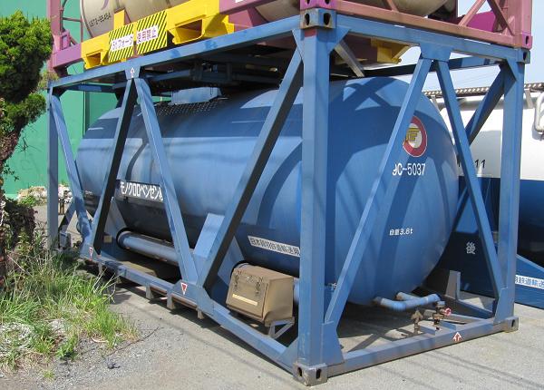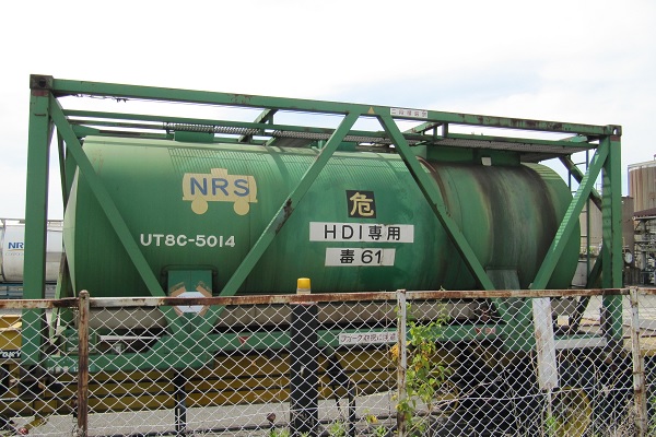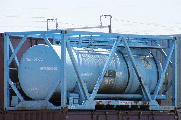 有者】 日本陸運産業株式会社 【借受者】 住友化学株式会社か? 【輸送品目】 プロパギルメチルフラン専用 【運用区間】 不明 【その他】 詳細不明のコンテナだが、危険物の消防への届け出が「八戸」であることが荷主や輸送区間のヒントになるかもしれない。 2017.10.28作成