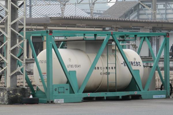 有者】 一宮運輸株式会社 【輸送品目】 過酸化水素水専用 【運用区間】 不明 【その他】 一宮運輸(株)は本社:愛媛県新居浜市、2011年12月期の年商216億円の物流会社である。主要取引先は、本社が新居浜市にあることから、やはり住 友化学(株)、住化 ロジスティクス(株)とのこと。 ただ過酸化水素水専用であるこのコンテナは住友化学が荷主では無いと思われるが、有田駅で目撃したという意外性も含めて謎のコンテナである。 2015.11.10作成