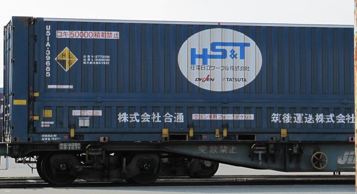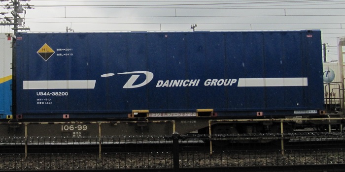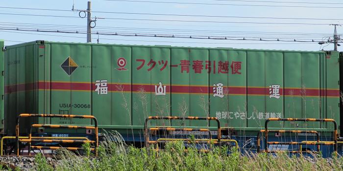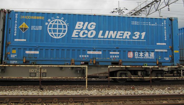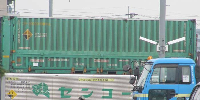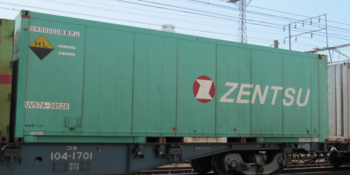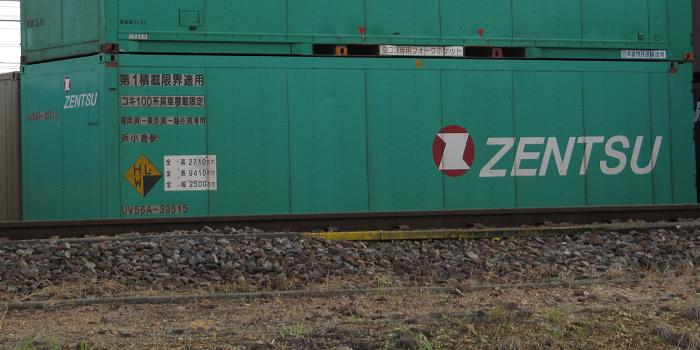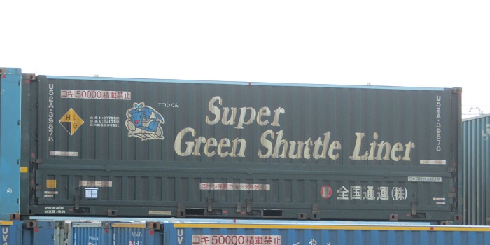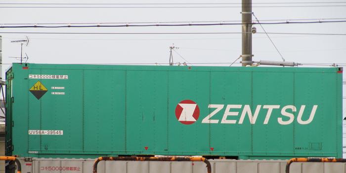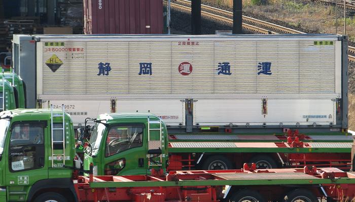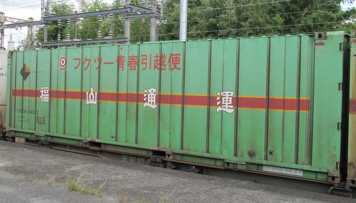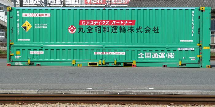 有者】 全国通運株式会社 【借受者】 濃飛倉庫運輸株式会社 【運用区間】 京都貨物〜東京(タ)など 【その他】 濃飛倉庫運輸(株)は2014年11月から異業種間往復輸送を開始した。京都貨物駅まで同社が滋賀県草津市の家電メーカー工場が出荷する家電製品を陸送 し、同駅〜東京(タ)駅を鉄道輸送し、ヤマト運輸(株)が埼玉県川越市の濃飛倉庫運輸(株)の拠点まで陸送する。その後、同コンテナは埼玉県川口市の硝子 メーカーで硝子容器を積載し、東京(タ)駅から京都貨物駅まで鉄道輸送、その後濃飛倉庫運輸(株)の陸送で、滋賀県野洲市の外資系企業の工場に到着する。 この輸送を開始するにあたり、31ftコンテナを増備し、3個体制で運用している。 (参考文献:『Monthlyかもつ』2015年9月号) 草津市の家電メーカーはパナソニック(株)、川口市の硝子 メーカーは不明、野洲市の外資系企業はP&G(株)と 思われる。 2019.7.14作成