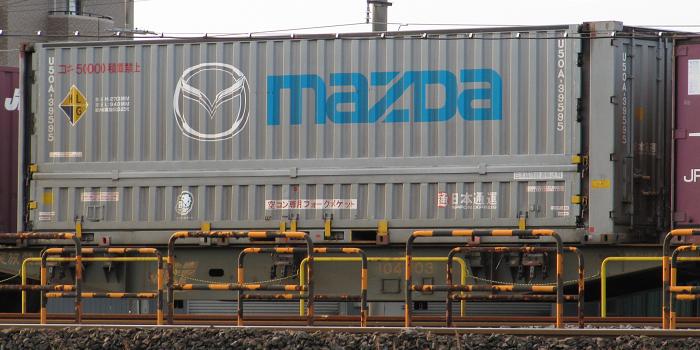 有者】 日本通運株式会社 【借受者】 マツダ株式会社 【輸送品目】 自動車部品、補修部品、通い箱 【運用区間】 名古屋(タ)〜広島(タ)の往復輸送 東海地区でミルクランによって集荷した調達部品を広島まで輸送し、帰り荷は補修部品や通い箱等を運ぶ往復輸送となっている。 (参考文献:『Mnothlyかもつ』2007年10月号) 2012.7.7作成