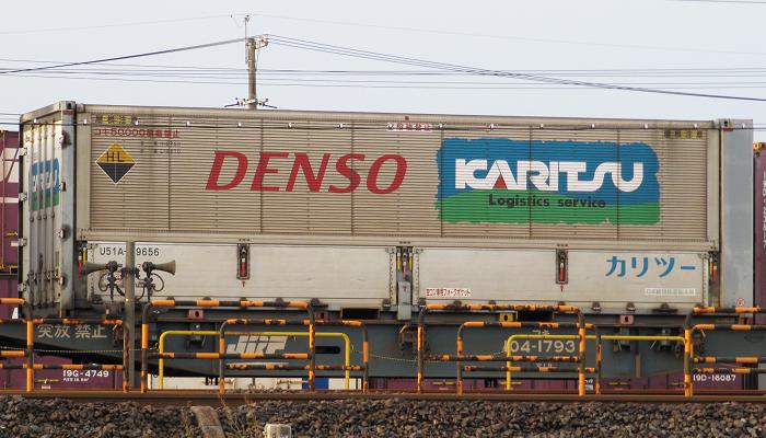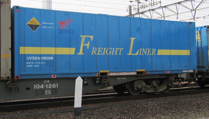 有者】 日本フレートライナー株式会社 【借受者】 コイズミ物流株式会社 【運用区間】 梅田〜越谷(タ) 【その他】 コイズミ物流(株)(本社:東大阪市)は照明器具・家具を製造販売する小泉産業潟Oループ等の物流を担っている。同社の東大 阪営 業所と草加営業所との間には毎日7〜8台の大型トラックが走っており、その内の1台分を鉄道へシフトすることになり、2007年3月から31ftコンテナ による鉄道輸送を開始した。鉄道で運ぶのはコイズミ照明(株)の照明器具、コイズミファニテック鰍フ家具、小泉成器(株)が扱う家電製品などの各種製品。 またグ ループ外の荷主の製品を集めてコンテナに載せることで完全な往復輸送が実現した。 (参考文献:『JR貨物ニュース』2007年12月1日号) 2015.10.24作成