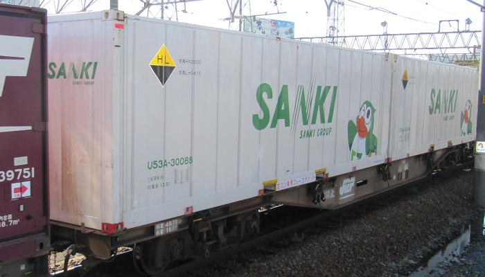 有者】 サントリーロジスティクス株式会社 【運用区間】 高松(タ)〜郡山(タ) 【その他】 2019年11月よりユニ・チャームプロダクツ(株)と共同で、31ftコンテナを各4個ずつ計8個製作し運用開始した。 鉄道利用の経験が豊富なサントリーロジスティクス(株)がユニ・チャームプロダクツ(株)が31ftコンテナの利用を提案した。 (『Monthlyかもつ』2020年1月号、p16-17) 2024.6.8作成