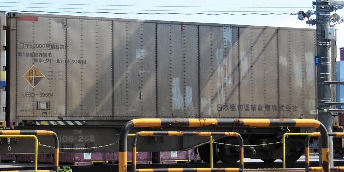 有者】 日本梱包運輸倉庫株式会社 【運用区間】 東京(タ)−北九州(タ)専用 【その他】 同社は31ftコンテナの導入に早くから取り組んでいるが、積み合わせ貨物用にJR貨物と共にスワップボディコンテナを開発した。 (参考文献:『Monthlyかもつ』2007年9月号) 2012.7.7作成 2015.9.20訂補