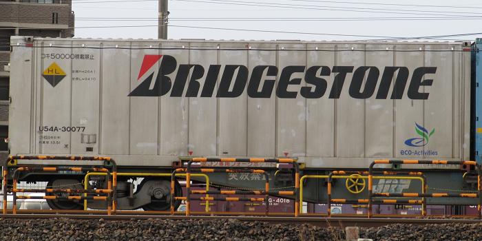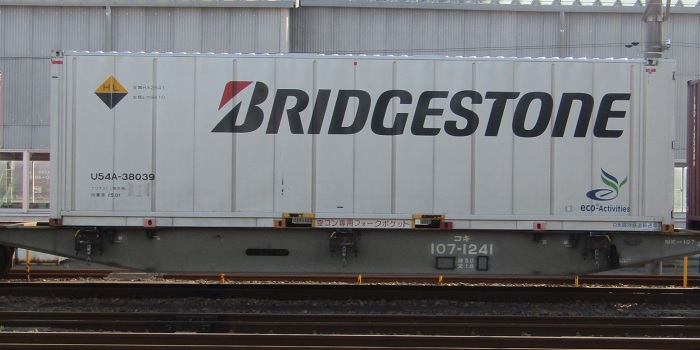 有者】 ブリヂストン物流株式会社 【輸送品目】 タイヤ・チューブフラップ 【運用区間】 宇都宮(タ)〜福岡(タ) 【その他】 2004年に(株)ブリヂストンは関東〜九州のトラック輸送の一部を鉄道コンテナ輸送にモーダルシフトした。栃木・那須工場からは製品タイヤを、久留 米・鳥 栖事業所からは製品タイヤとチューブフラップを、宇都宮(タ)〜福岡(タ)間で相互に出荷する。九州からは、タイヤとチューブフラップを積み合わせする場 合もある。 (参考文献:『JR貨物ニュース』2004年6月1日号、1面) (※拙web「貨物取扱駅と 荷主」の 「宇都宮貨物ター ミナル駅」 を参照) 2012.7.7作成