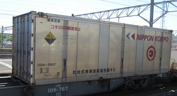 有者】 センコー株式会社 【運用区間】 福岡(貨)−東京(貨)専用 【その他】 元の所有者はニッポー物流サービス(株)(本社:大分県日田市南友田町910)である。同社は2011年1月に社名を(株)NBSロジソルに変更の上、 本店を埼 玉県越谷市に移転した。また同社webサ イトには、2007年12月末現在の保有車輌としてJR私有コンテナ9基とあるが、その後コンテナを手放したのかもしれない。 2012.7.22作成