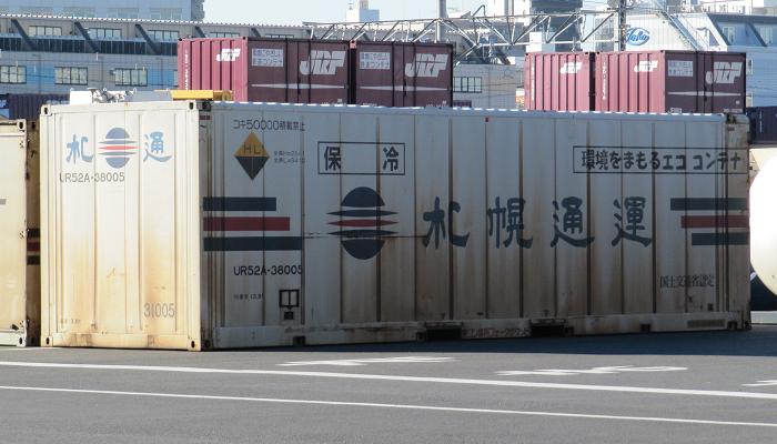 有者】 札幌通運株式会社 【運用区間】 札幌(タ)〜隅田川・梅田 【その他】 札幌通運はモーダルシフト実証実験が国土交通省の認定を受けたことから、背高31ft保冷コンテナを15基製作し、札幌〜東京・大阪間の貨物輸送を海運 及びトラックから鉄道にモーダルシフトした。 (参考文献:『Monthlyかもつ』2004年4月号) 2015.8.24作成