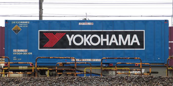 有者】 日本石油輸送株式会社 【借受者】 浜ゴム物流株式会社 【輸送品目】 タイヤ 【運用区間】 西浜松〜福岡(タ) 【その他】 横浜ゴム(株)は愛知県新城市野田字古屋敷1番地に新城工場があり、乗用車用タイヤを製造している。 浜ゴム物流ではCO2排出量削減を目指し、利用運送事業者・浜松倉庫鰍ニ大型コンテナを利用した輸送を検討した。 そこで日本石油輸送(株)が保有する既存の30ftコンテナをリニューアルし、浜松倉庫を通してリースすることとし、現在は5個の30ftコンテナを九 州・ 沖縄の配送拠点である浜ゴム物流福岡支店向けに、月曜から土曜日までは毎日1個ずつ、木曜日には2個を西浜松〜福岡(タ)で利用している。 浜ゴム物流は、福岡からの帰り荷を探している。また往復荷化を模索しながら、東北向けなど他方面へのコンテナ活用も検討されている。 (参考文献:『JR貨物ニュース』2012年12月15日号) 2012.7.7作成 2013.1.6訂補