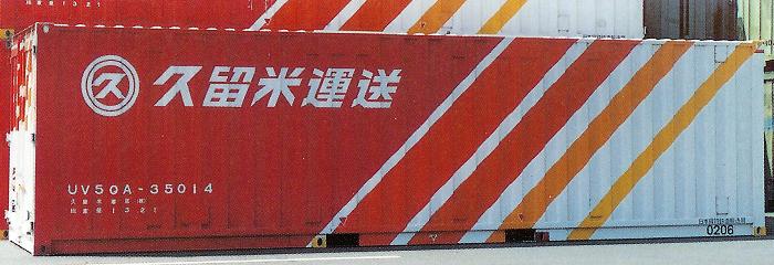 有者】 久留米運送株式会社 【運用区間】 九州〜関東と思われる 【その他】 久留米運送(株)の30ftコンテナは1990年代後半まで東海道筋のコンテナ列車でよく見かけた気がするが、最近は見なくなった気がする。鉄道貨物輸 送の 利用を止めてしまったのだろうか。 2013.1.6作成