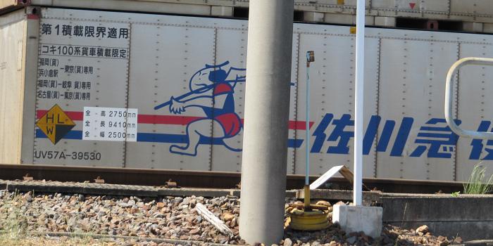 有者】 佐川急便グループ 【運用区間】 福岡(貨)−東京(貨)−越谷(貨)専用 【その他】 運用区間表示の下に「浜小倉駅」と表記してあるが、常備駅のことだ ろうか?飛脚のデザインが懐かしい。 2012.7.7作成